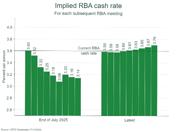 The October release delivered a “pretty ugly” inflation print, according to analysts. The pick-up was broad-based, driven by strong growth in services prices, which accelerated to an annual rate of 3.9%. The largest contributor to inflation overall remains housing, which surged 5.9% year-on-year. This acceleration in demand-driven services prices reinforced the view that monetary policy settings may not be restrictive enough. Following the CPI release, financial markets cut expectations for future rate cuts, with some analysts and market pricing even suggesting a small chance of a rate hike in 2026.